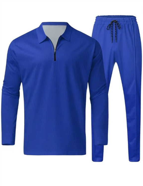 Men's 2pcs Sports Wear, Polo Long-Sleeved Shirt