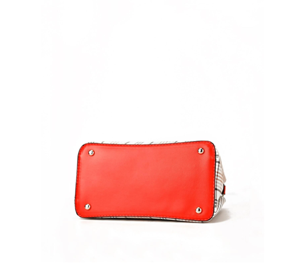 The plaid pattern gives the bag a classic touch, while the charming decor adds a modern twist.